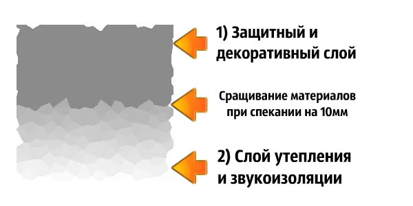 - Первый слой - это защитно-декоративный слой толщиной 10-15 мм из высококачественного бетона, песка, неагрессивных полимеризующих добавок и армирующих волокон.